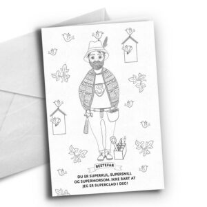 Her er kortet som barna kan gjøre til sin gave ved å fargelegge sin bestefar og mønsteret rundt