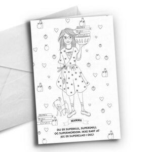 Her er kortet som barna kan gjøre til sin gave ved å fargelegge sin mamma og mønsteret rundt.