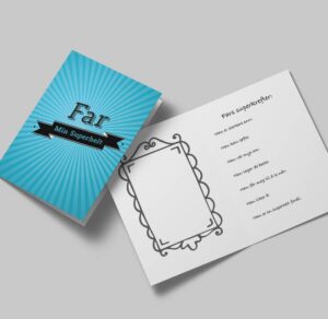 Et kort som barna kan ta del i. Her kan barna selv skrive sine tanker om sin far og tegne et portrett i rammen. Et kort som blir den aller største gaven på farsdag!