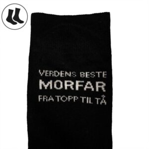 Så i år har vi produsert strømper med den herlige teksten Verdens beste morfar fra topp til tå.